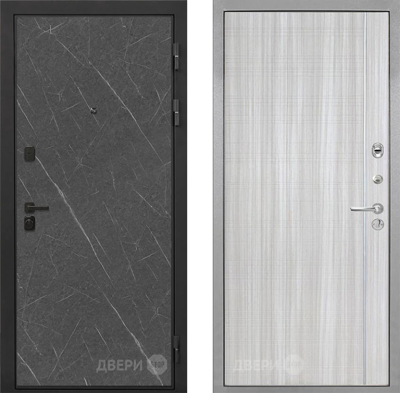 Входная Дверь Интекрон (INTECRON) Профит Black Гранит Лава Оникс В-07 с молдингом Сандал белый 860x2050 мм